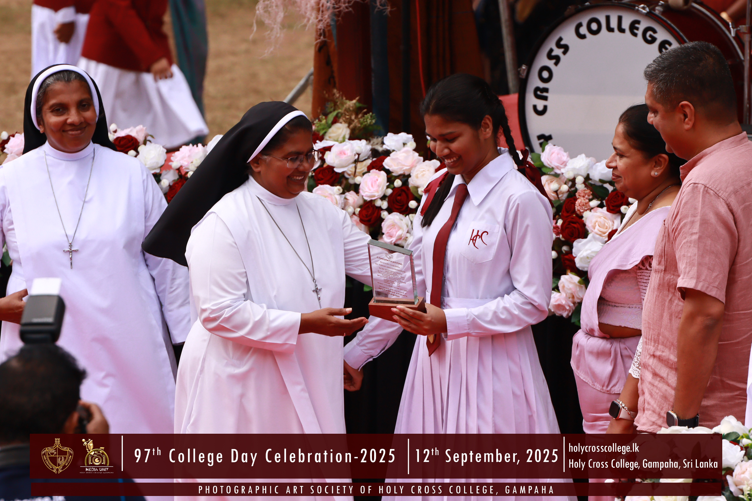 Felicitation of Thenumi Ranasinghe for obtaining 3As' in the Arts Stream—ranking 4th in the Island and 2nd in the District in A/L Examination -2024. Nevertheless, honoring the 30 students who achieved 9As' in O/L Examination-2024, brought courage, inspiration, and pride to all Crusadians. It also lit up the name ‘Holy Cross’ in everyone’s hearts. The distribution of prizes for the College Day Quiz Competition reflected the love and gratitude of HCC students towards their college.